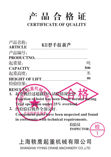 | 产品合格证 | 产品质量由保险公司承保 |